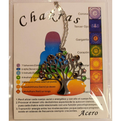Colgante Arbol de la Vida 7 Chakras. Incluye cadena, ambos de Acero .