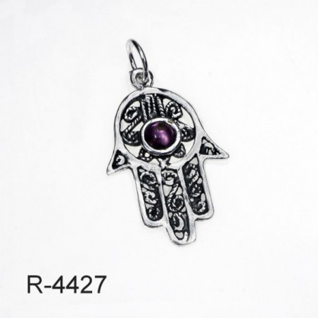 Colgante MANO DE FATIMA CON AMATISTA en plata de ley 925 Ml.