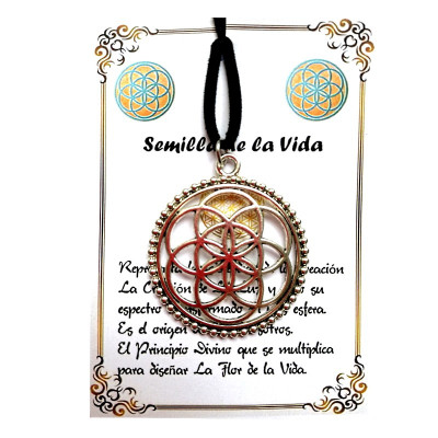 Colgante Talismán Semilla de la Vida. Incluye cordón y hoja explicativa.
