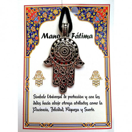 Colgante Talismán Mano de Fatima. Incluye cordón y hoja explicativa.