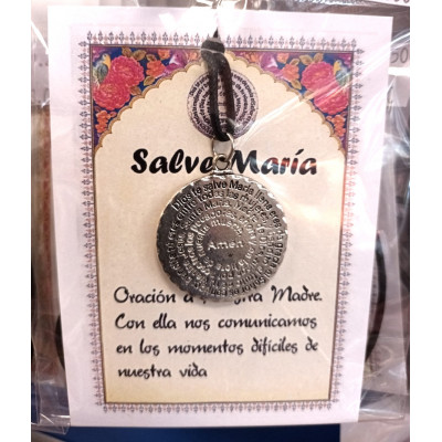 Colgante Talismán SALVE MARIA. Incluye cordón y hoja explicativa.