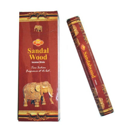 Incienso de Sándalo (Sandalwood), 6 Cajas de 20 Sticks cada una. Se enviará la marca que haya en ese momento en stock, Sac, Namaste India, Balaji....).
