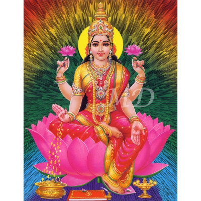 Lakshmi es la diosa de la riqueza y la prosperidad, tanto material como espiritual. La palabra'''' Lakshmi se deriva de la palabra sánscrita Laksme, que significa "meta". Lakshmi, por lo tanto, representa la meta de la vida, que incluye la prosperidad material y espiritual.