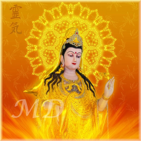 Kwan Yin es un Ser de Luz del 7º Séptimo Rayo Violeta de la Misericordia, la Compasión, el Perdón y el Amor compasivo. Es la manifestación femenina de Avalokiteshvara (Bodhisattva de la Compasión) y de Amidha Buddha.