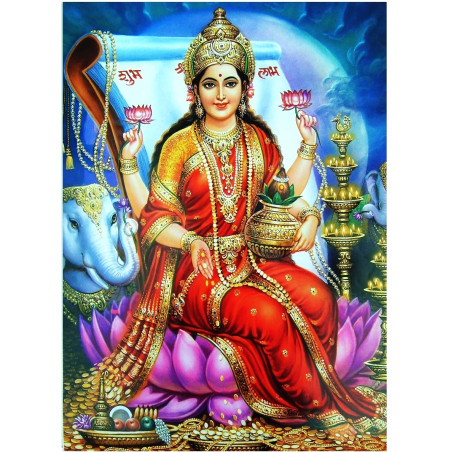 El revestimiento de oro (bordado): en su vestido rojo denota prosperidad. La idea expresada aquí es que la diosa está siempre ocupado distribución de la riqueza y la prosperidad a los devotos.