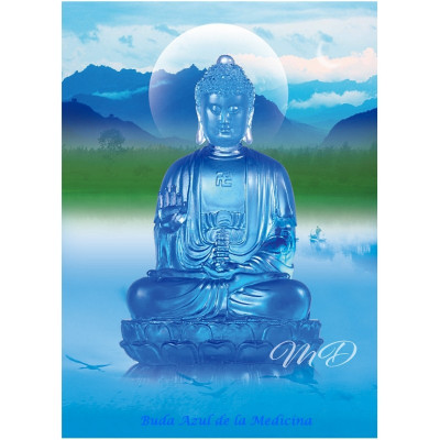 Su cuerpo de luz azul de sabiduría simboliza que es una manifestación del poder curativo de todos los Budas.
