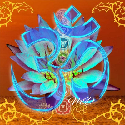OM El Mantra más sagrado de las religiones dhármicas.​ Simboliza el divino Brahman y el universo entero. También se le denomina: omkara aum ॐ en silabario devánagari.