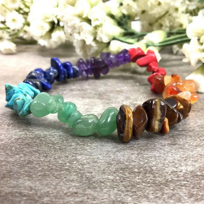 Pulsera elástica adaptable Chips 7 Chakras, de chips grandes.