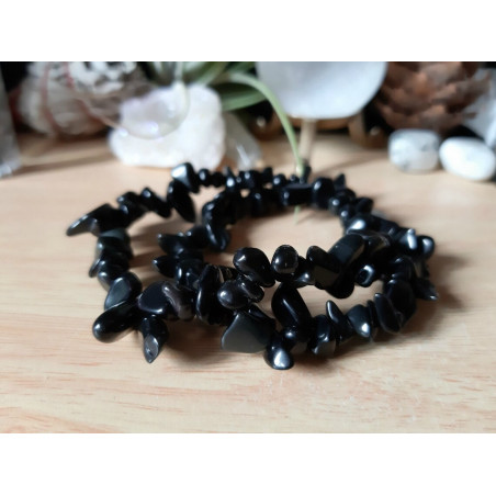 Pulsera elástica adaptable de Cuarzo Chips Obsidiana Negra.