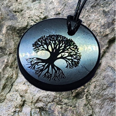 Colgante Redondo Grabado a Láser Arbol de la Vida de Shungit.